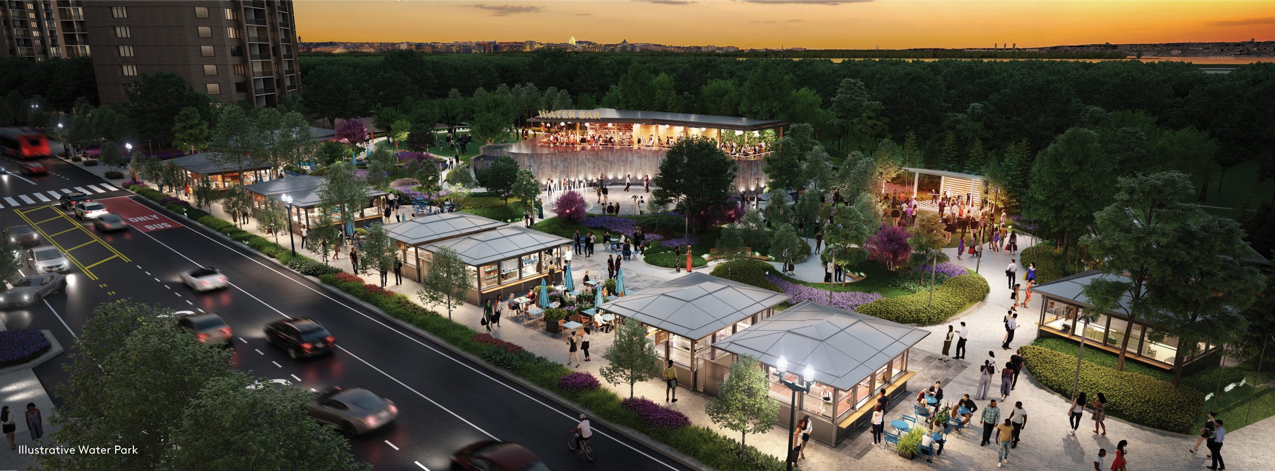 A longtime community gathering spot, the water park underwent major renovations in 2022 to become an outdoor food hall. These added several restaurant kiosks, a cocktail and oyster bar, public art, a performance stage and more outdoor seating.